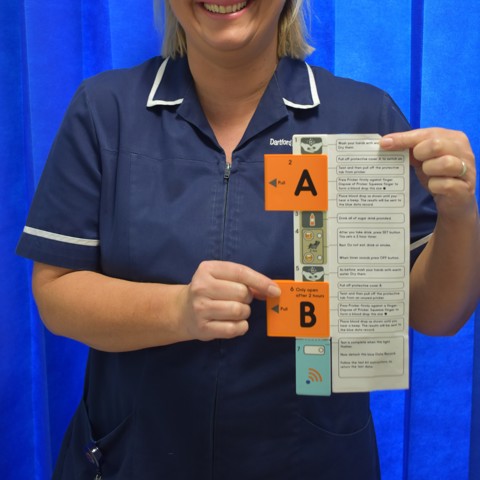 Picture: Gemma Whitbread, Dartford & Gravesham NHS Trust Antenatal Clinic Sister, holding the GTT@home test