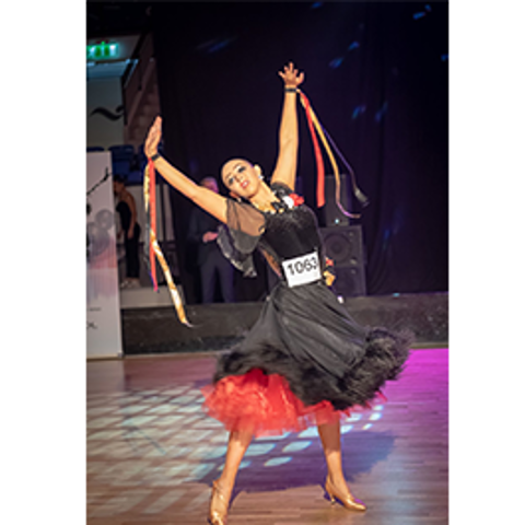 - Det är så klart mycket planering vid resorna. Förutom att hon tränar fem gånger i veckan, åker på tävlingar runt om i världen, läser på läkarlinjen så jobbar hon också som danslärare. Så det blir inte mycket fritid för henne. Först i början av sin danskarriär tävlade hon i disco, men nu är det Artistic ballroom som gäller, där hon har kommit tvåa och trea i EM och VM samt tagit guld i SM och i Nordiska mästerskapen. Danserna varierar mellan salsa, rumba, paso doble, wienervals, tango, quickstep, bachata, slowfox, merengue, vals med flera, där alla danser är solo, utan partner. För två år sedan belönades hon med Accu-Chek Idrottsstipendium för sina fantastiska prestationer inom dansen.